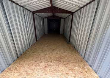 Дополнительно была сделана вторая воротная группа с другого торца для сквозного прохода между гаражом и хозблоком, а также установлены дополнительные простенки для жесткости конструкции.