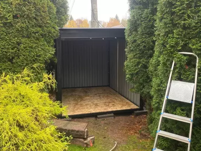 Доставляли гараж на участок заказчика манипулятором в разобранном виде. Нашими специалистами предоставлялась услуга по сборке. Справились за 3,5 часа.