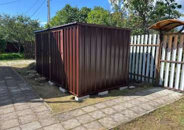 Доставляли хозблок на участок заказчика манипулятором в разобранном виде. Нашими специалистами предоставлялись услуги по установке бетонных блоков и сборке изделия.