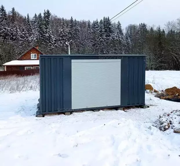 В середине ноября к нам обратился клиент, которому понадобился контейнер для хранения различного инвентаря и материалов на дачный участок. Выбор пал на стандартный контейнер, который решили немного улучшить и заменили стандартные распашные ворота на рольставни, расположив их на боковой стороне.