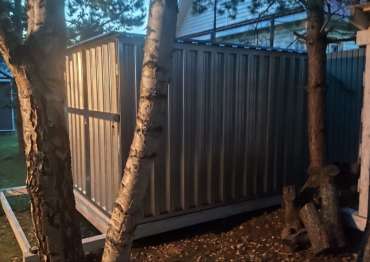 Доставляли хозблок на участок заказчика манипулятором в разобранном виде. Нашими специалистами предоставлялась услуга по сборке изделия. Справились с задачей за 2,5 часа.
