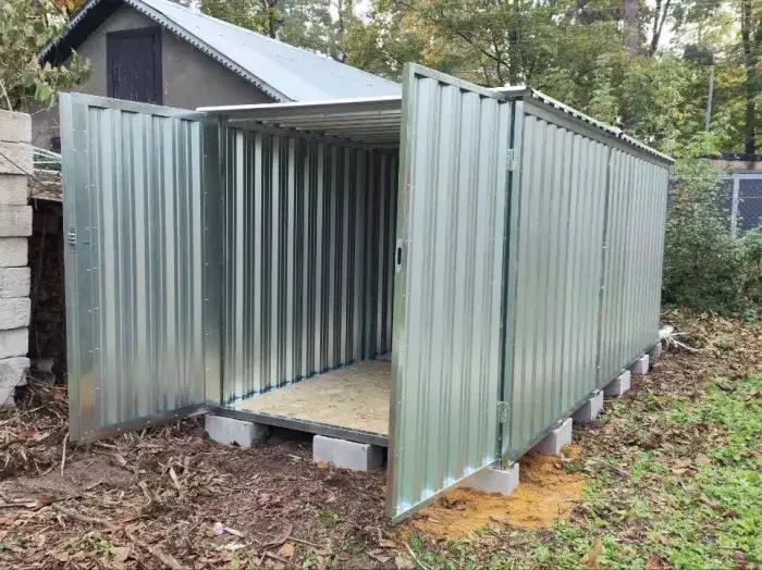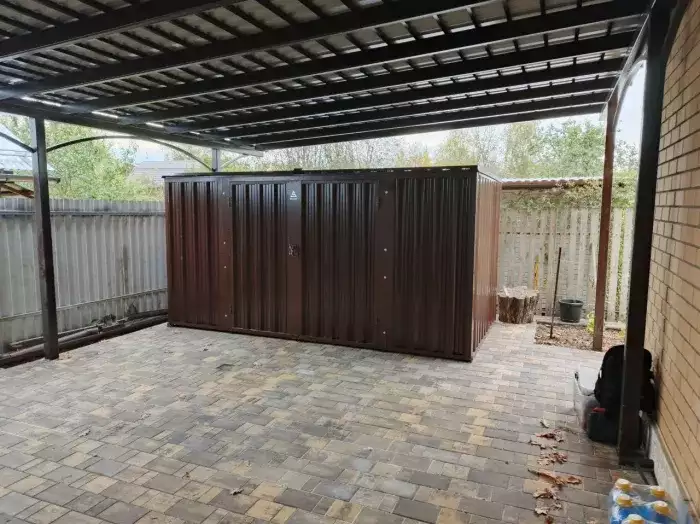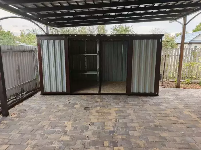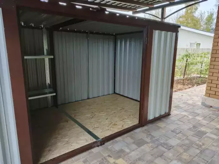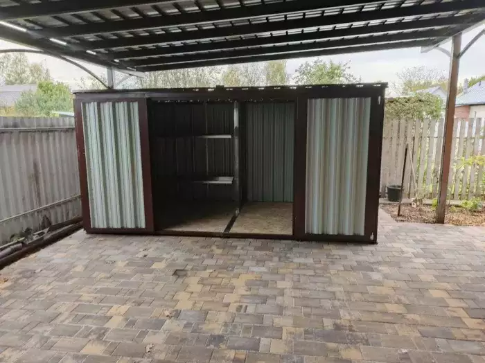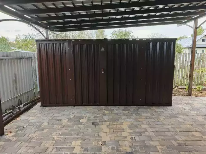 Проект: 6-метровый хозблок для хранения садового инвентаря в расцветке "под дерево".