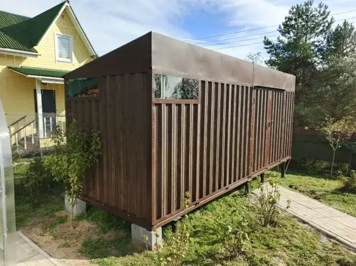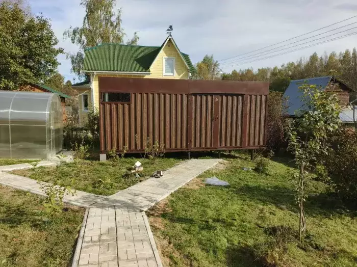 Доставляли хозблок на участок заказчицы манипулятором в разобранном виде. Нашими специалистами предоставлялись услуги по установке бетонных блоков и сборке изделия.