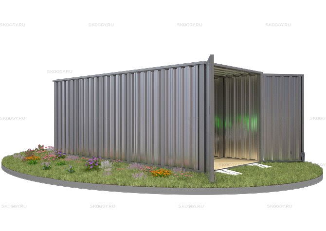 Секционный контейнер SKOGGY с плоской крышей 2 х 5 м. предназначен для хранения предметов и вещей для быта, инструмента и малогабаритного транспорта.