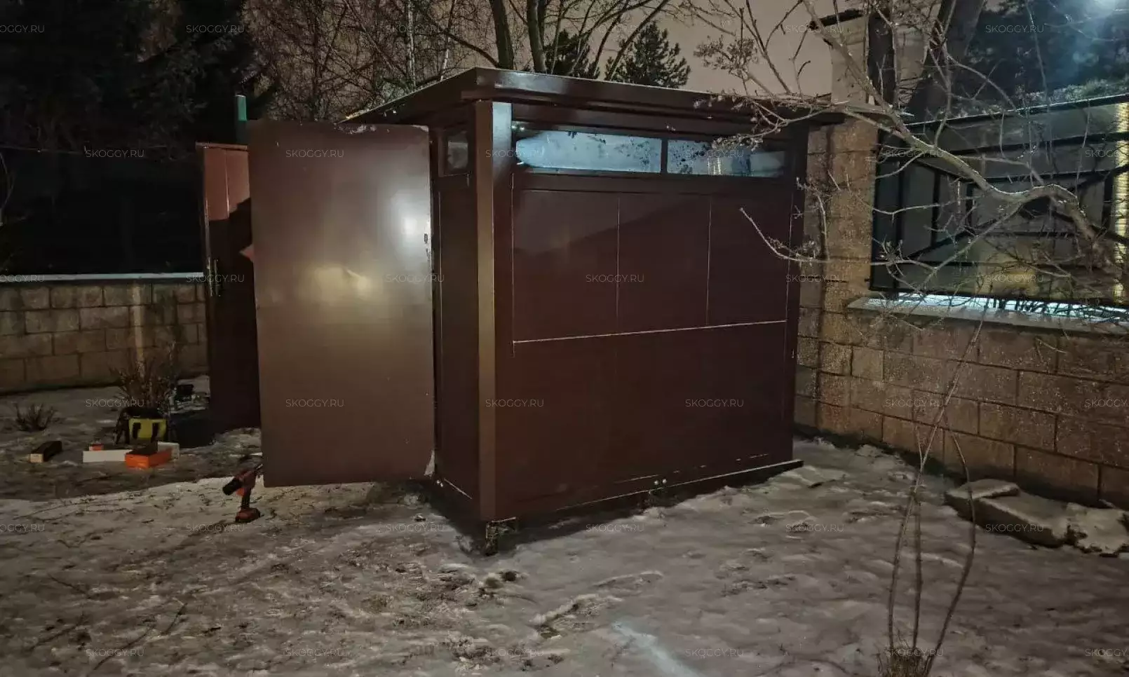 Нами было изготовлено 19 конструкций индивидуальных размеров с односкатными крышами и боковыми воротными группами в строгом графитовом цвете с нанесением ярких и красочных принтов.