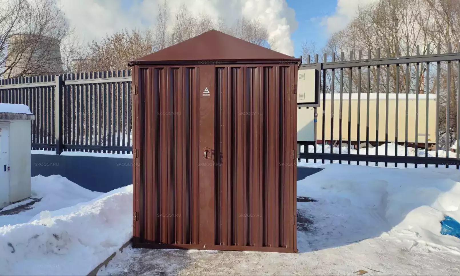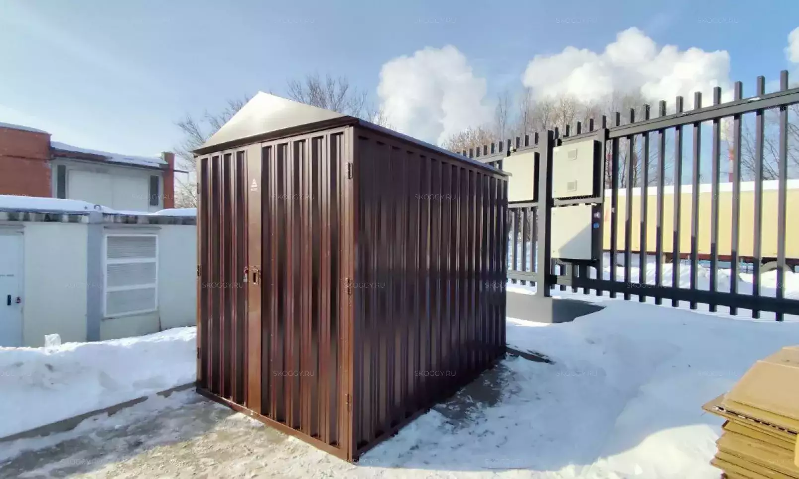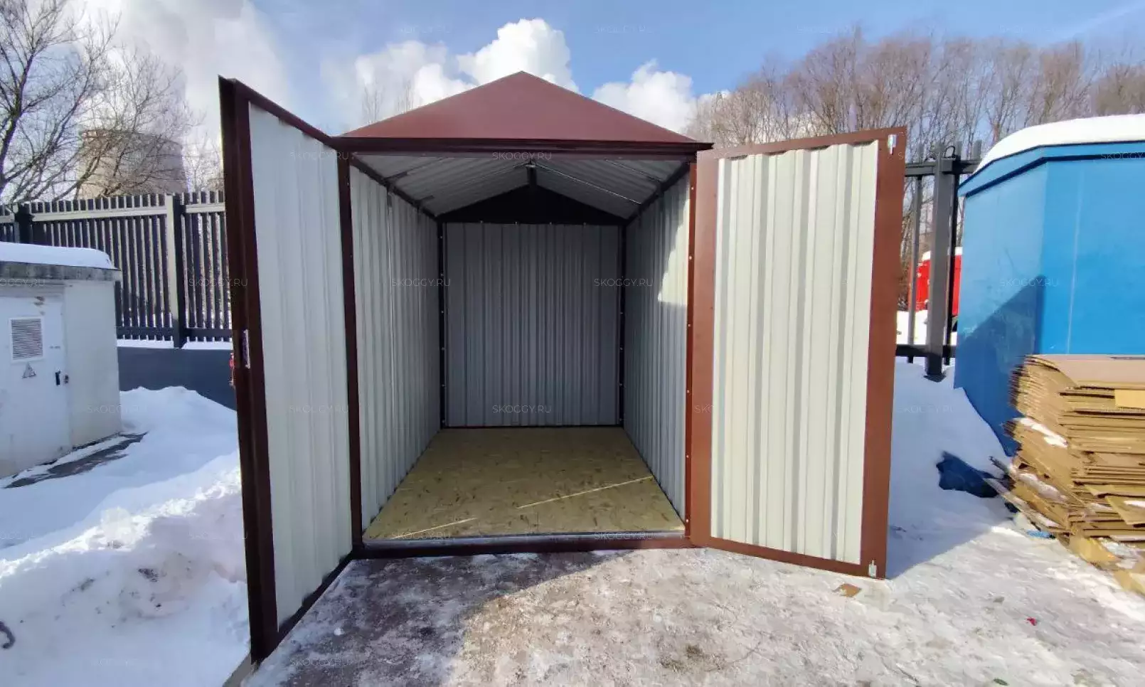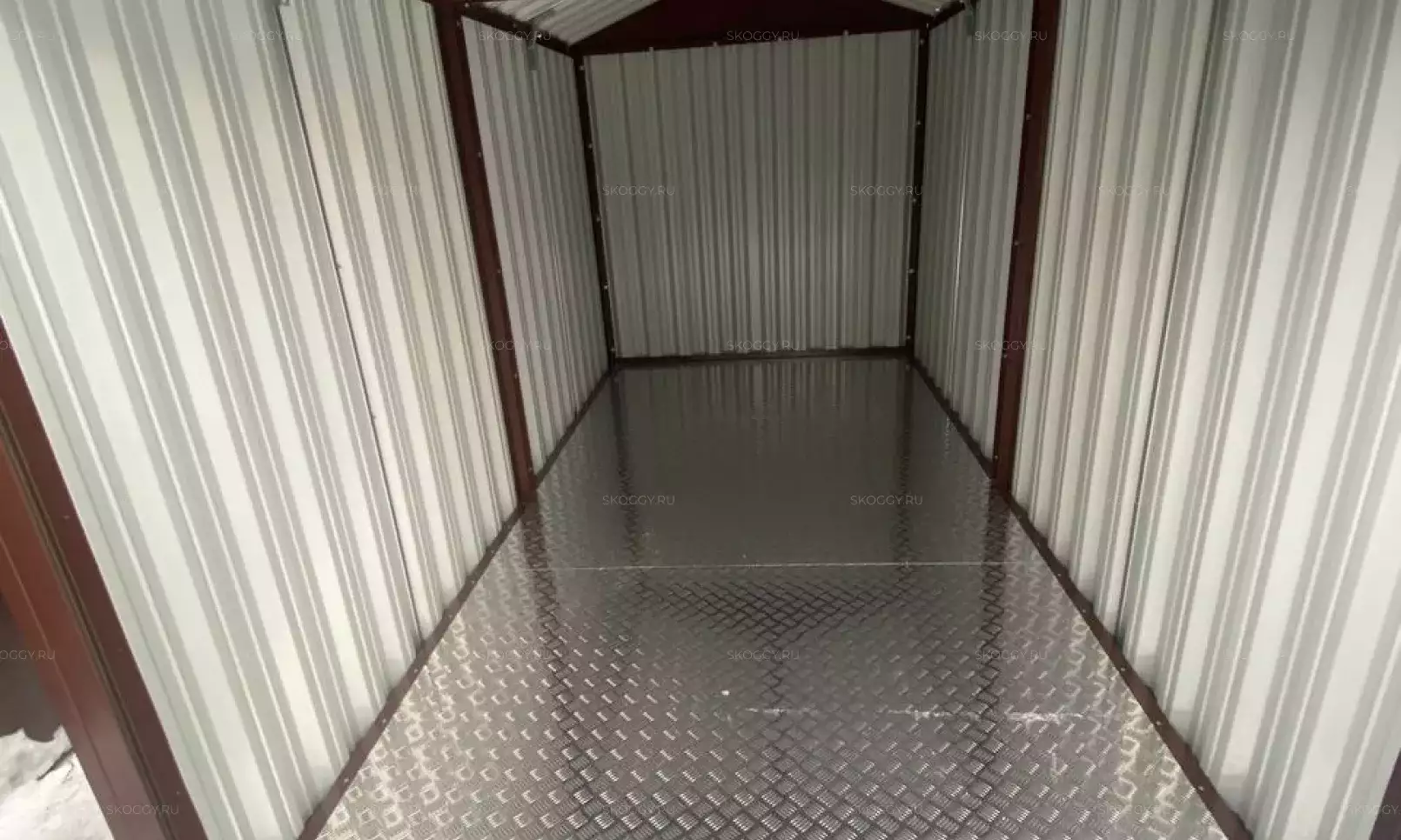 Будущее строение изготавливали без двери, так как у заказчика была хорошая накопительная скидка от производителей рольставней. Поэтому, дверь конструкция получит чуть позже, хозяин будет ее устанавливать самостоятельно по индивидуальным параметрам.